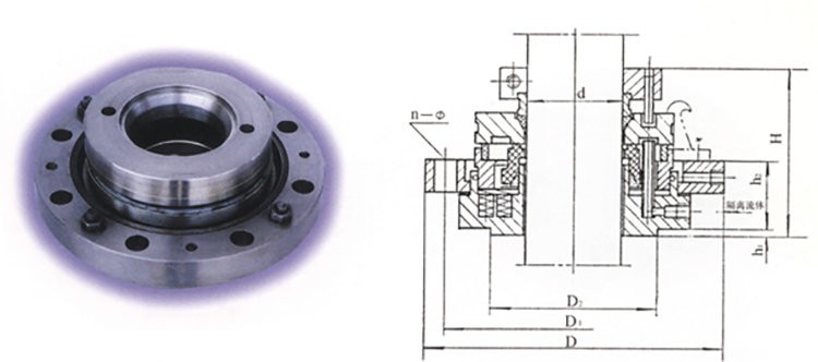 特點:雙端面機械密封有兩道端面密封,若密封失效,二級密封仍然可密封,防止泄露。一般雙端面密封都需要外供密封液系統,向密封腔內引入封液進行堵封、潤滑和冷卻,且多為循環冷卻使用。密封液不僅可以沖洗摩擦副改善機械密封工作環境,還可以作為密封面是否失效的重要檢測手段。